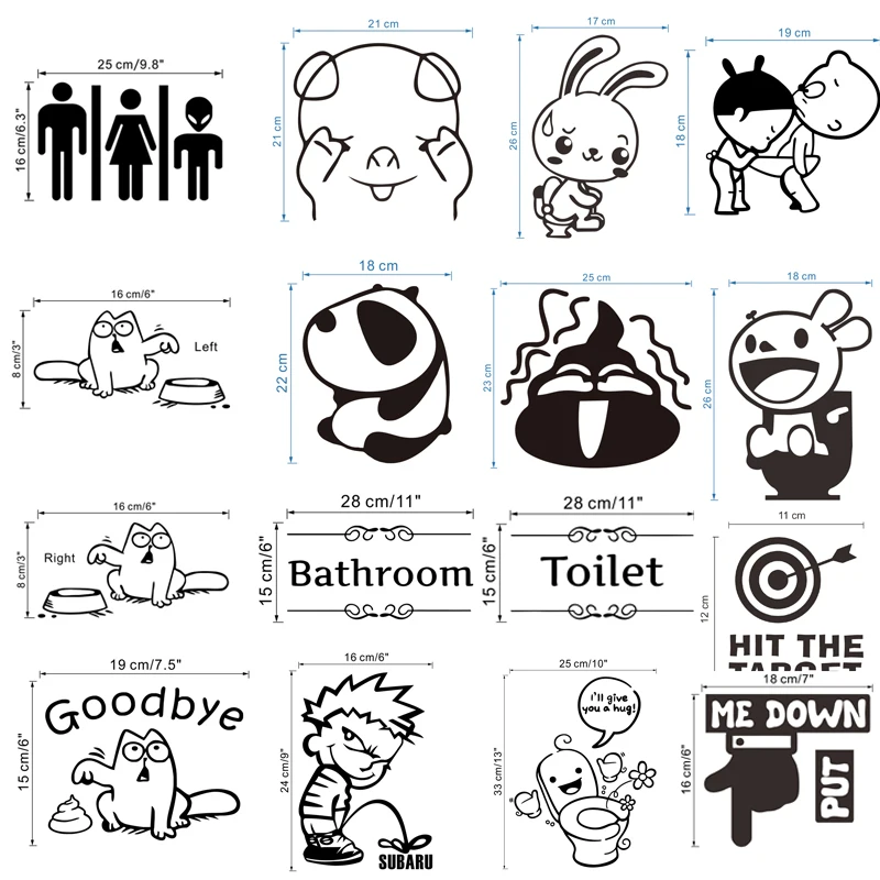 Забавные Стикеры для туалета, кролик, панда, свинья, откладываются,...