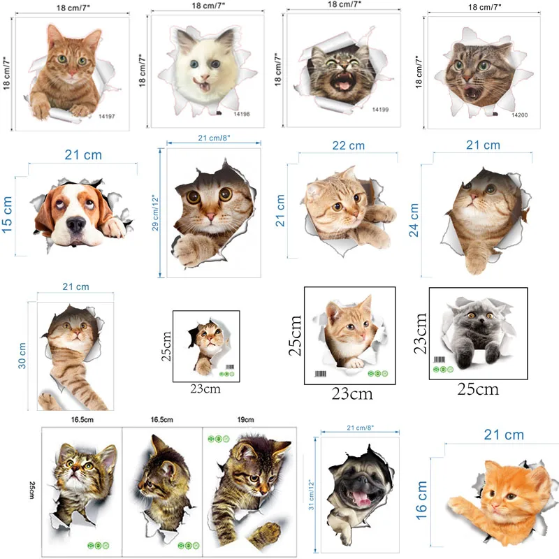 3d отверстия кошка собака наклейки в туалет домашний декор Diy Смеш...