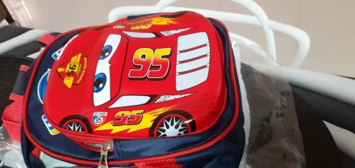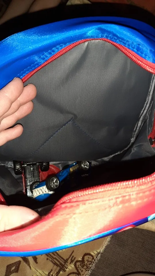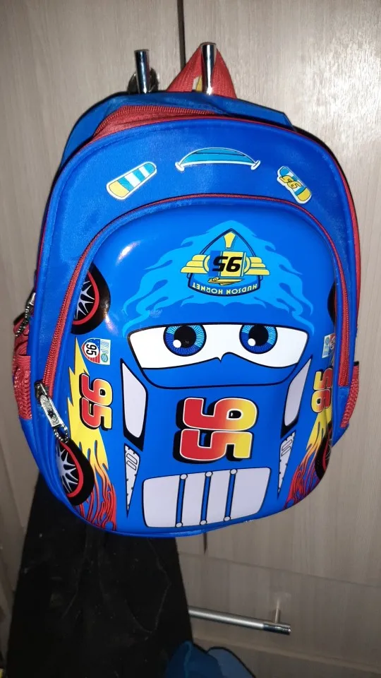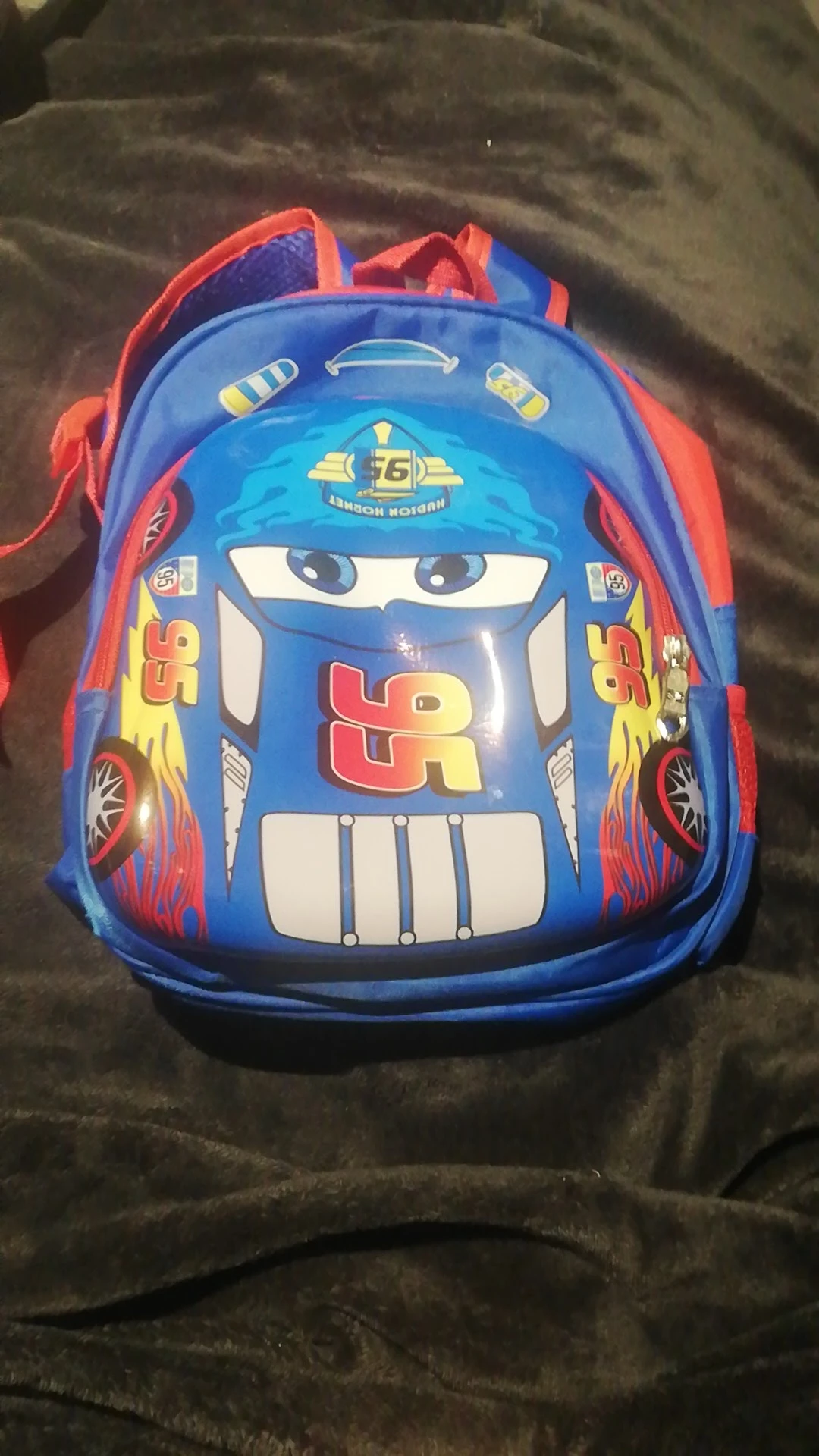 Очень красивый и прочный. Заказ прибыл раньше, чем ожидалось. Синий с красной машиной. Я рекомендую его на 100%