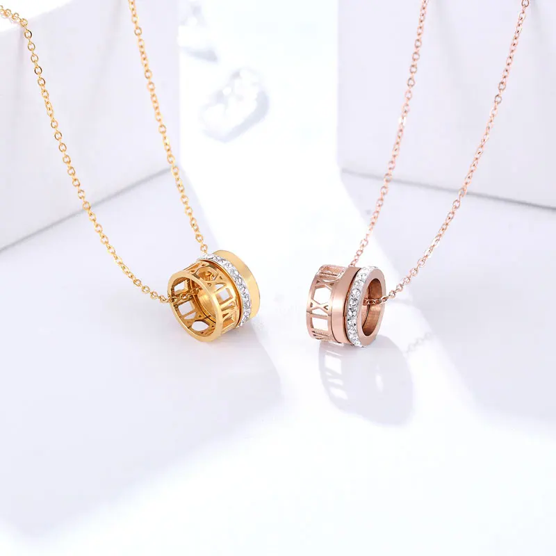 Женское Ожерелье с тремя кругами из циркония, ожерелье с римскими цифрами, вечерние ювелирные изделия из нержавеющей стали