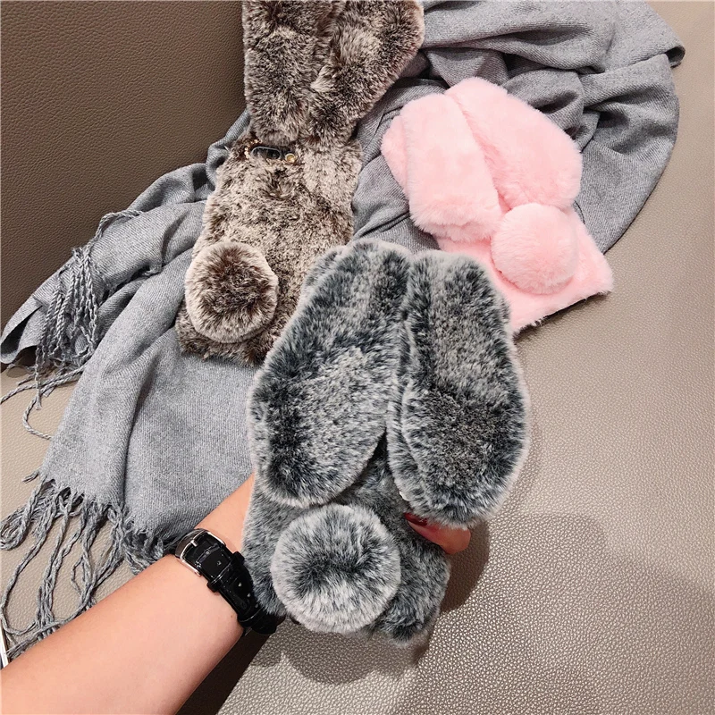 Теплые плюшевые чехлы с кроличьим мехом и бриллиантами для телефоно...
