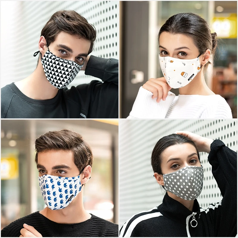 Wecan Тканевая маска для лица черные маски для рта против гриппа PM2.5 Пылезащитная многоразовая маска на лицо тканевая маска для маскара с 2 шт фильтр с активированным углем