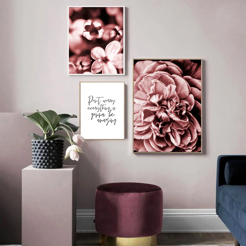 Розовый пион цветок семья картина плакат в скандинавском стиле Севе...
