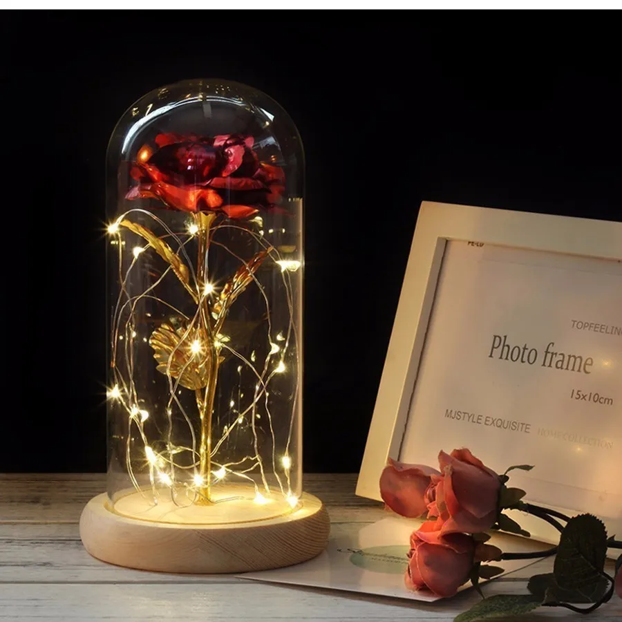 Купольная Роза Красавица и Чудовище, Роза в стеклянном куполе, навсегда розовая, Красная роза, Красавица, специальный романтический подарок
