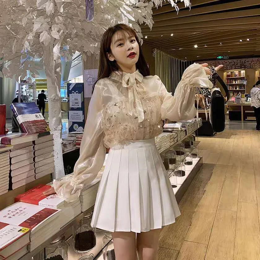Плиссированная юбка с высокой талией для женщин, милая танцевальная...