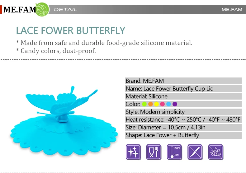 Универсальная креативная Милая кружка с бабочкой, кружевные цветы, силиконовые крышки, уплотнение, защита от пыли, стекло, керамика, пластиковая крышка для чая, многоразовые