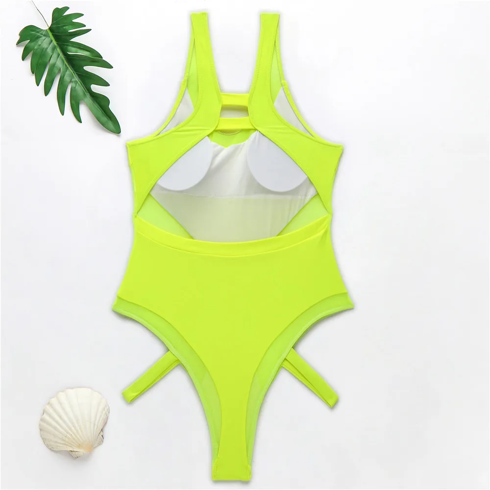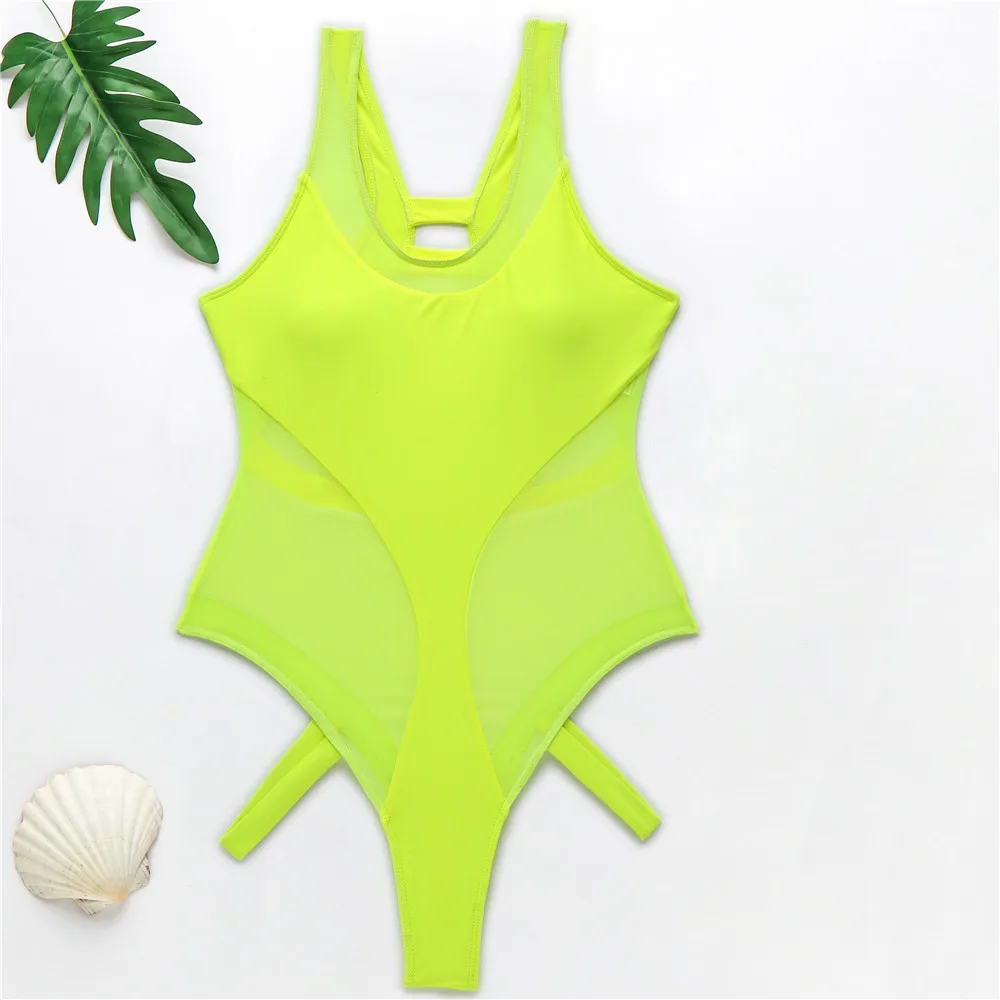 Неоновый розовый оранжевый боди Цельный купальник 2020 сексуальный спортивный Монокини пуш-ап Мягкий купальник с высоким вырезом женский купальник S-L