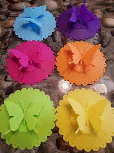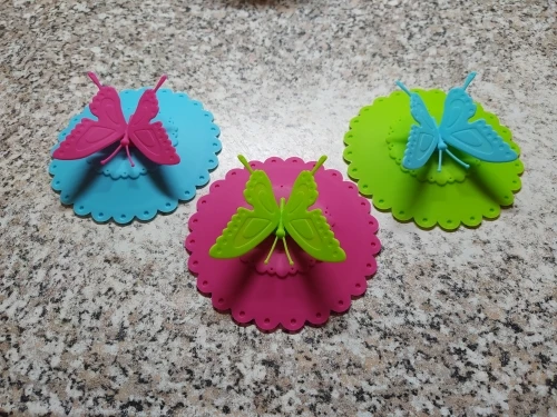 Абсолютно хороший продукт эти крышечки! Отлично для кружек/стаканов, креманок для варенья и много чего другого. Я использую для заваривания чая в кружке, накрываю розетку с мёдом. Выглядят очень хорошо, бабочки съёмные и можно комбинировать по цвету. Ещё это отлично подойдёт для подарка. Рекомендую, продавец хороший, отправляет быстро и с отслеживанием, 2-3 недели.