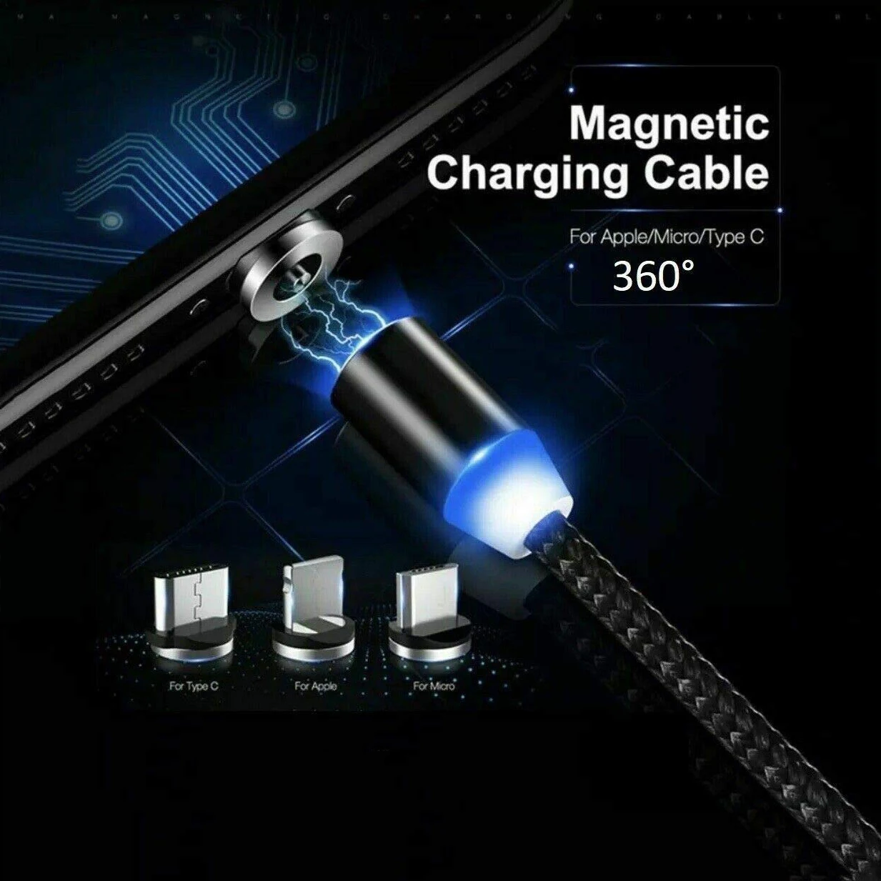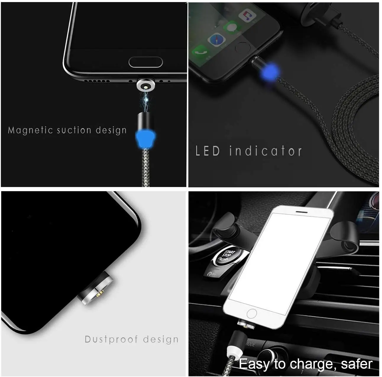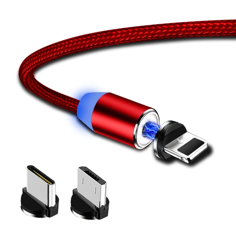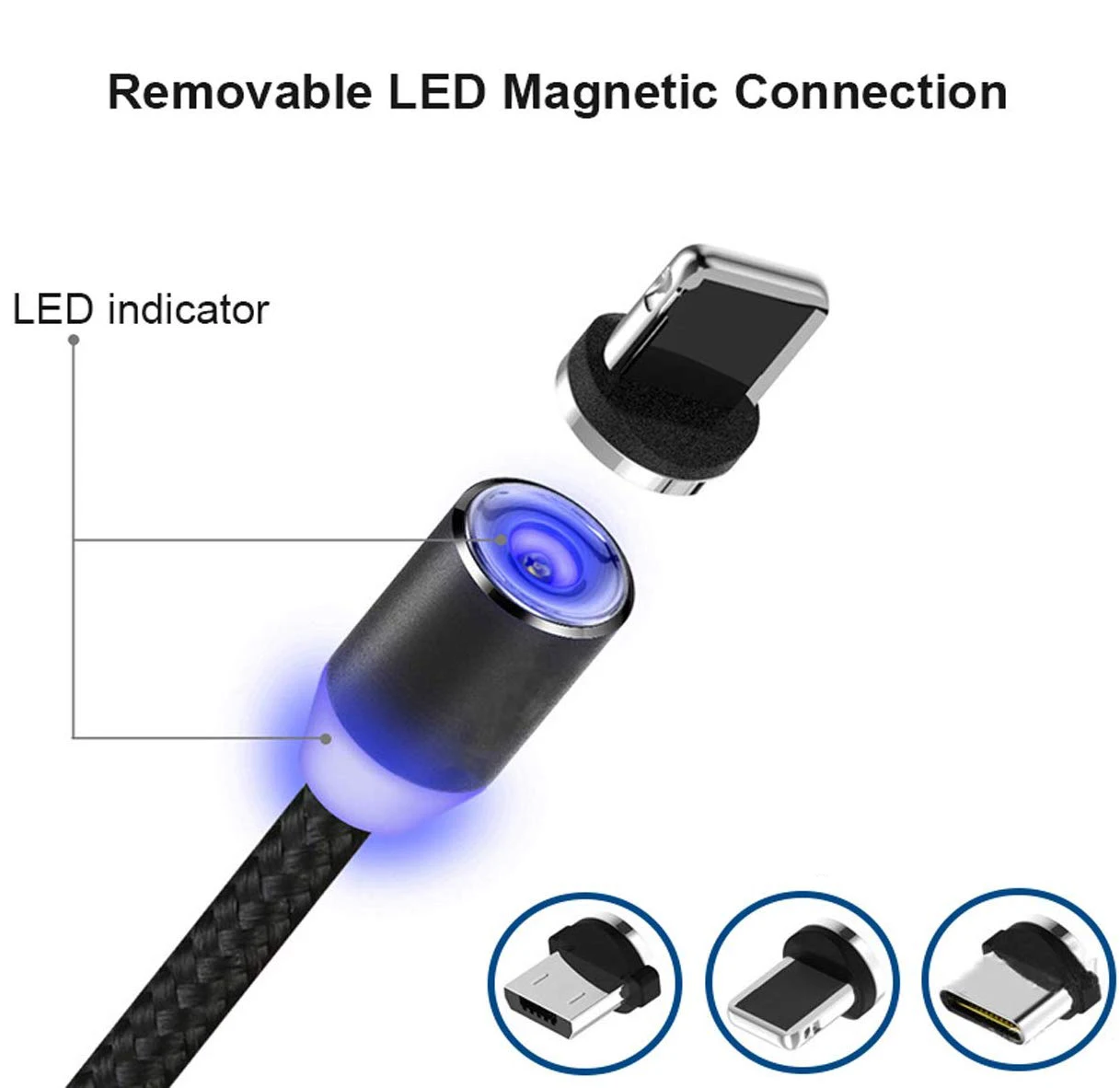 Зарядный магнитный USB-кабель 3 в 1, светодиодная линия, провод для быстрой зарядки для apple iphone 8 pin iOS Micro USB и Type C