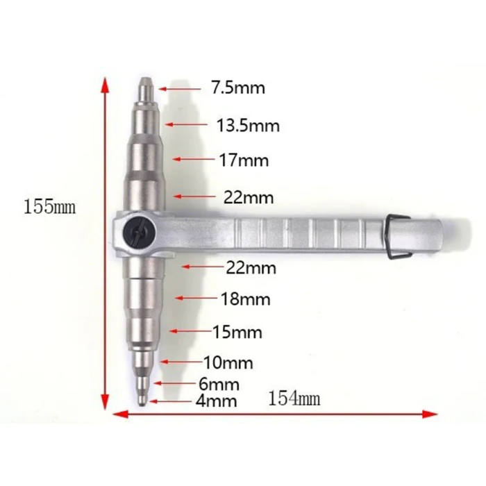 2. Универсальный ручной расширитель предназначен для метрической трубки: 6 мм, 8 мм, 10 мм, 12 мм, 16 мм, 19 мм, 22 мм.