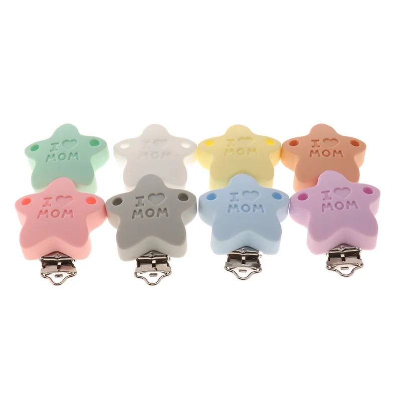 ATOB10PCS соска клип I LOVE MOM» («Я люблю маму») силиконовый Прорезыватель для зубов DIY Уход за пустышки для младенцев, клипы на цепи без добавления бисфенола А Держатель для пустышки детские подарки