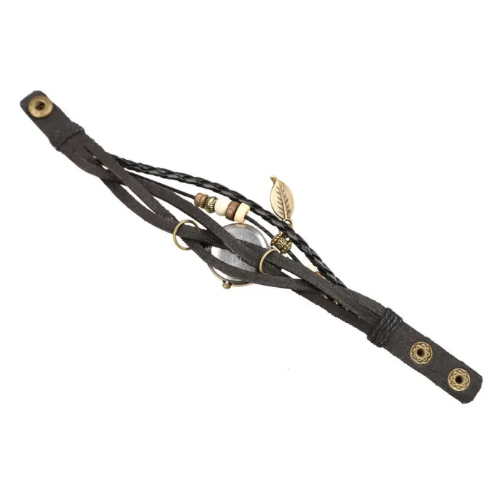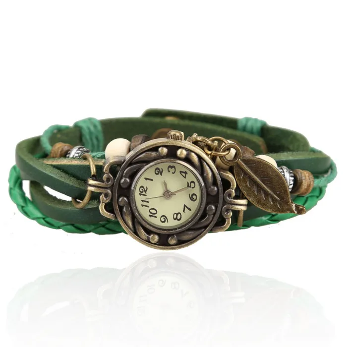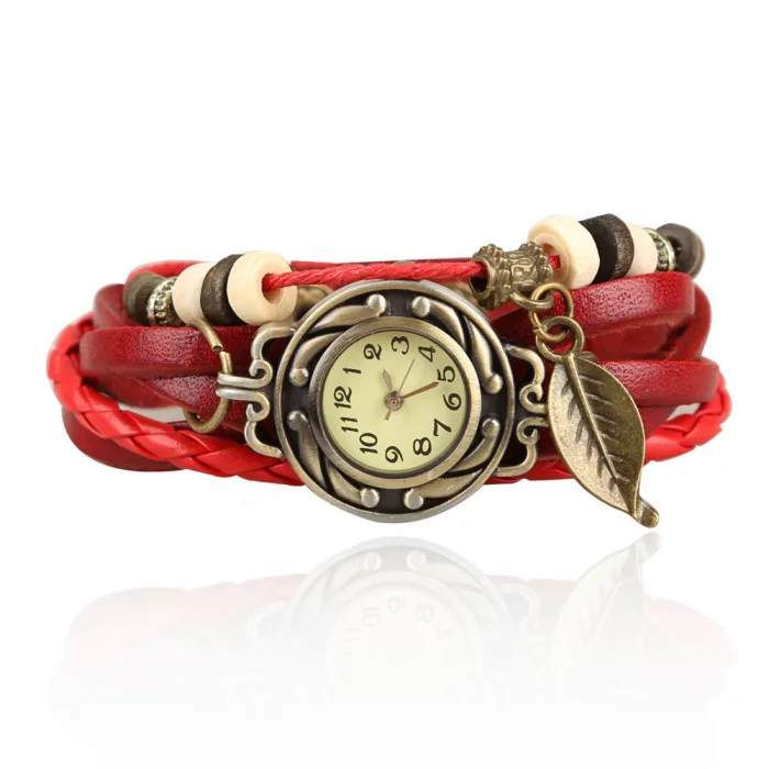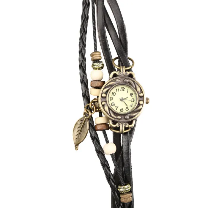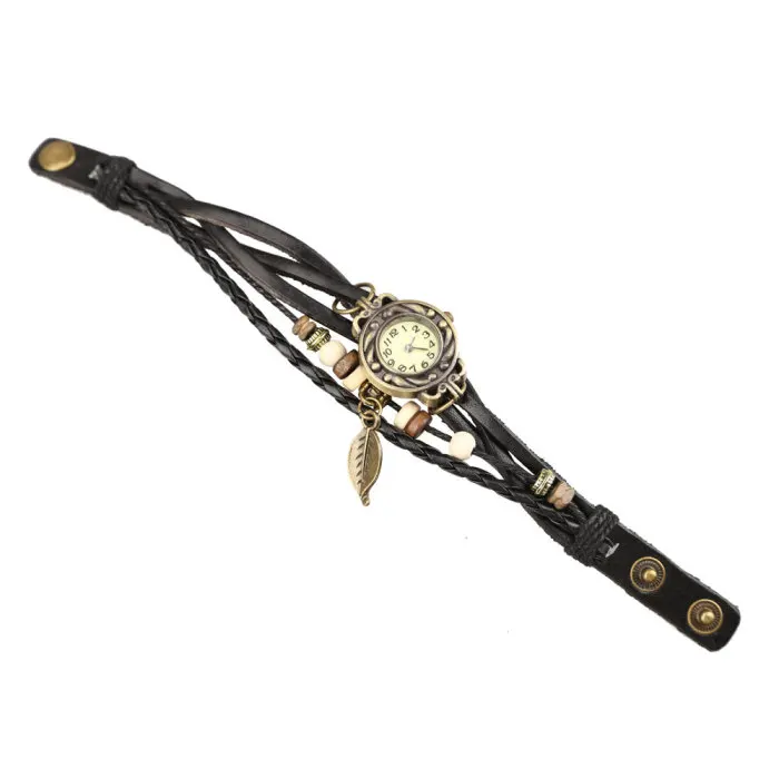 Винтажный браслет кварцевые наручные часы с плетением кожаный ремешок лист бусины для женщин XIN-доставка