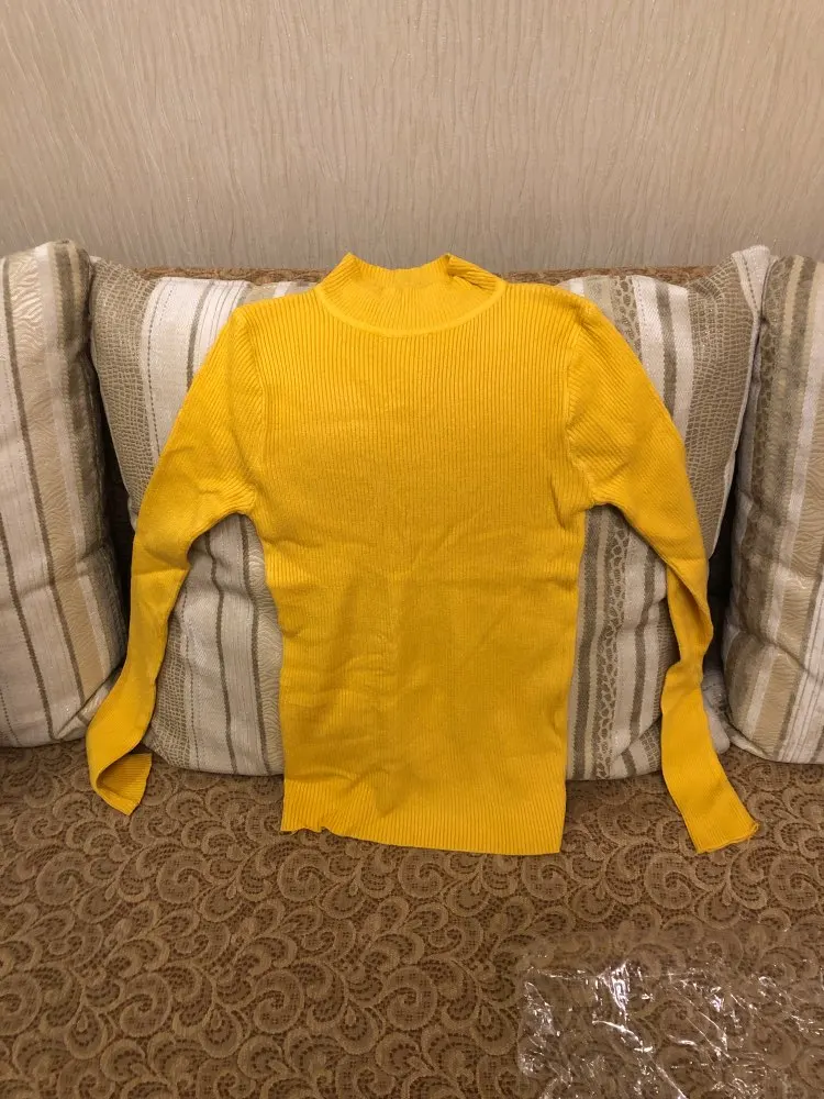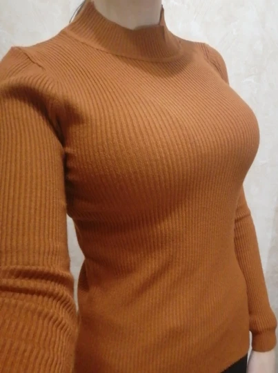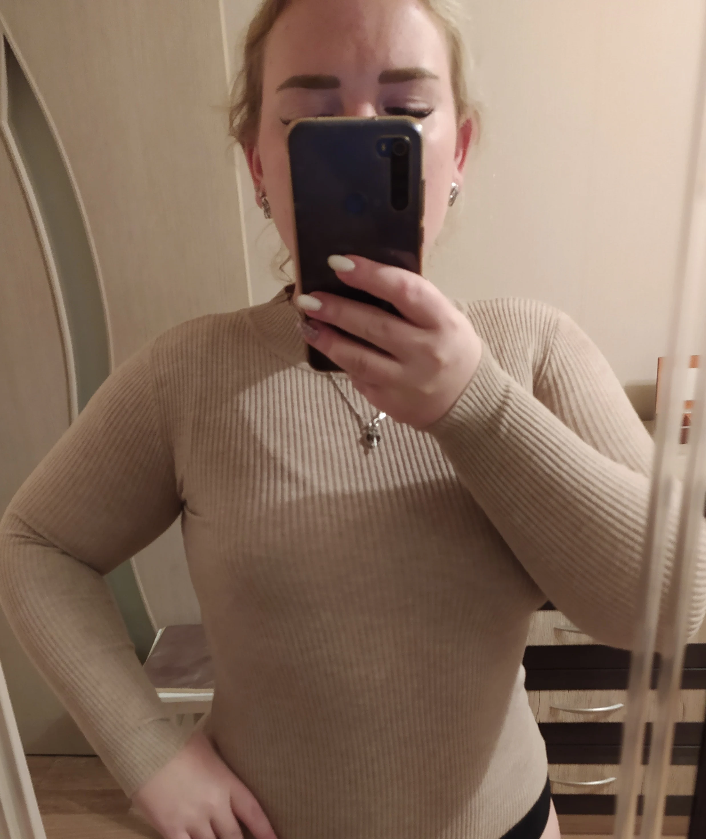 Спасибо продавцу,посылку получила.Заказала L побольше размер,чтобы не обтяжку было.А пришла типо водолазка тоненькая,жиденькая и в плечах мало и вся в обтяжку.Рукава хорошие только не короткие.За такую цену такую бы не купила.