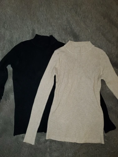 Очень приятные к телу и удобные водолазки, заказывала комплект сразу из 2х водолазок, но пришли с разными горловинами, в целом не критично, но неприятно. А так офигенные. Хорошо тянутся, по размеру все подошло.