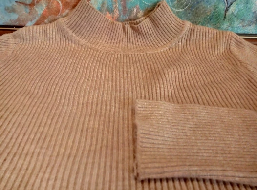 Заказала 11, пришли на почту 26 ноября. Цвет бледно_розовый, мягкий, не слишком толстый свитер. Хорошо тянется. Без этикеток, без ничего. Не понятно новый он или...