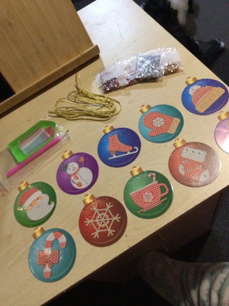 Пришло раньше. Я не знаю, почему я думал, что они полностью украшены бриллиантами, только картина-это алмаз, а остальное-просто. Я доволен украшениями. Это будет забавно для меня, чтобы сделать с моим ребенком.