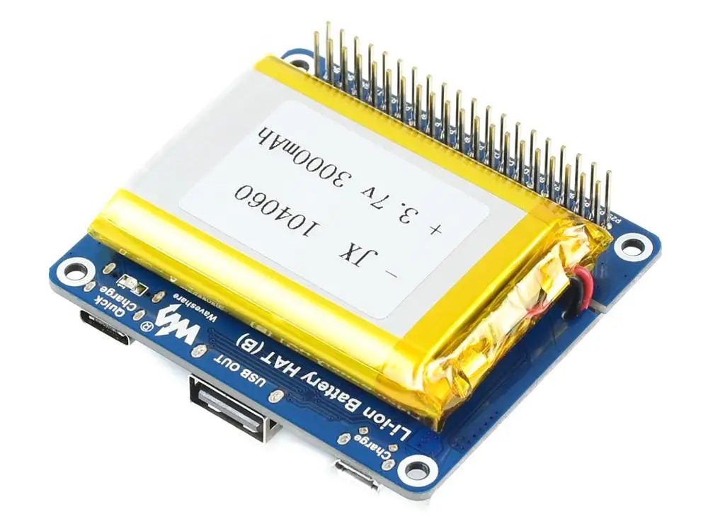 По сравнению с литий-ионным аккумулятором, эта шляпа использует литий-полимерный аккумулятор с более высокой емкостью, что означает более длительный срок службы батареи, и позволяет более высокие нагрузки. Размер шляпы больше подходит для Raspberry Pi B/A +/B +/2B/3B/3B +/4B.