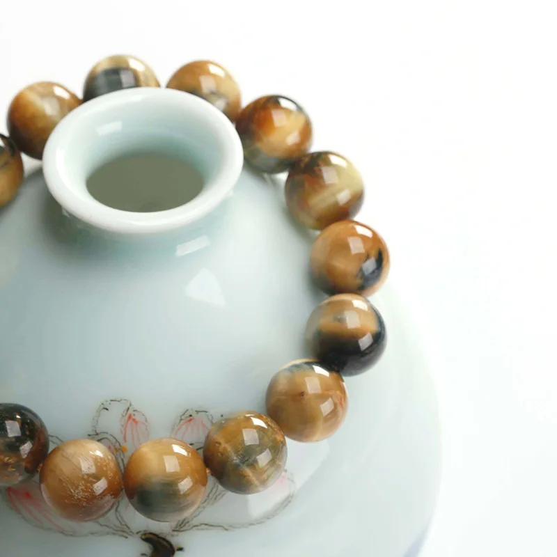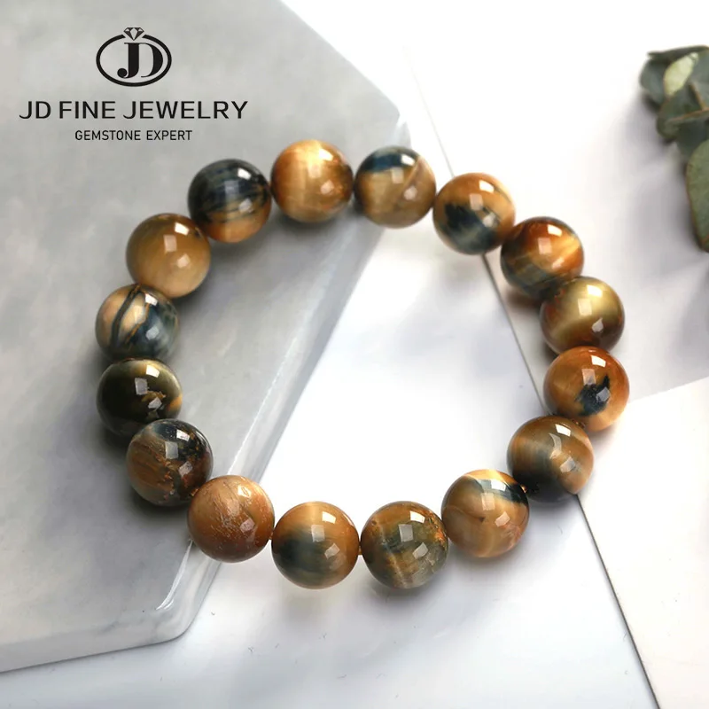 JD 8-16 мм Золотой Цвет Тигр глаз камень бусины браслет китайские т...