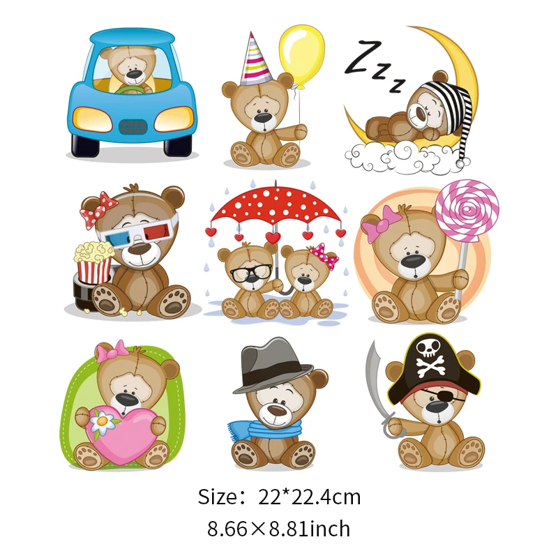 Милые нашивки с аппликацией медведя для детской одежды «сделай сам», простые в использовании моющиеся А-уровневые теплопередающие виниловые нашивки, наклейки с утюгом