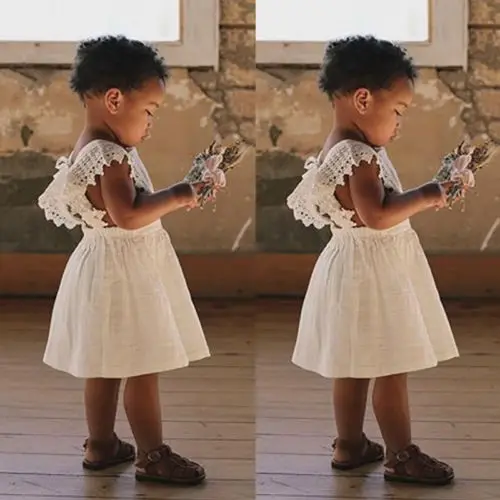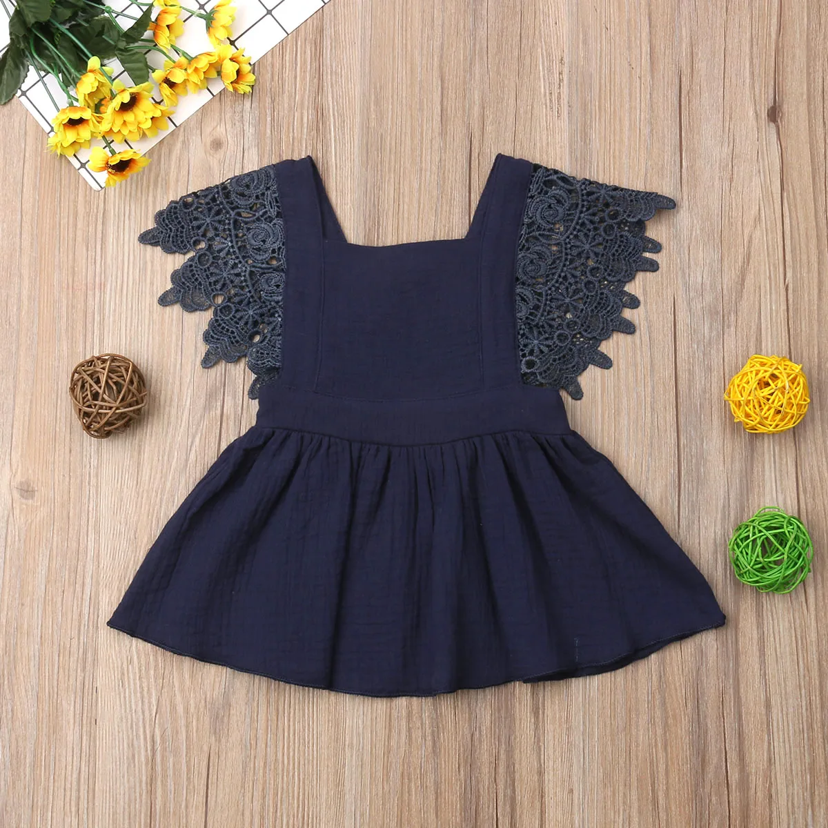 Кружевное платье с цветочным принтом для новорожденных девочек; Летние хлопковые повседневные платья; Одежда От 0 до 3 лет