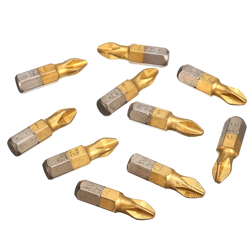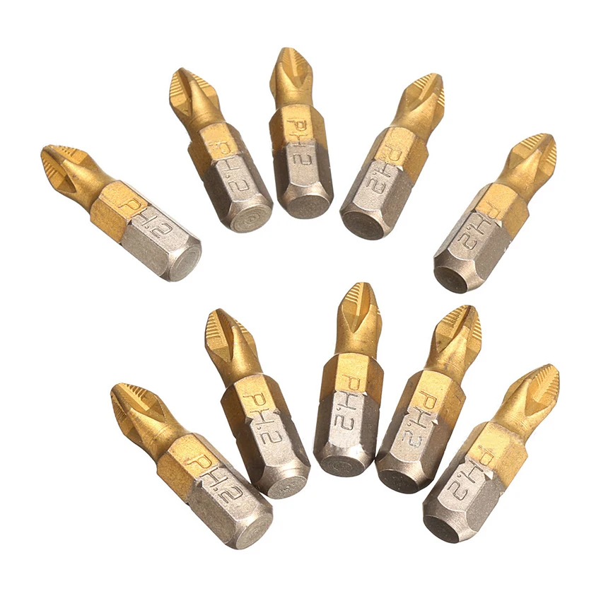 10 шт.компл. с фокусным расстоянием 25 мм шестигранный хвостовик Магнитный Phillips PH2 насадки для отвертки Титан покрытие таможенный приходной ордер инструмент для ремонта отвертки набор