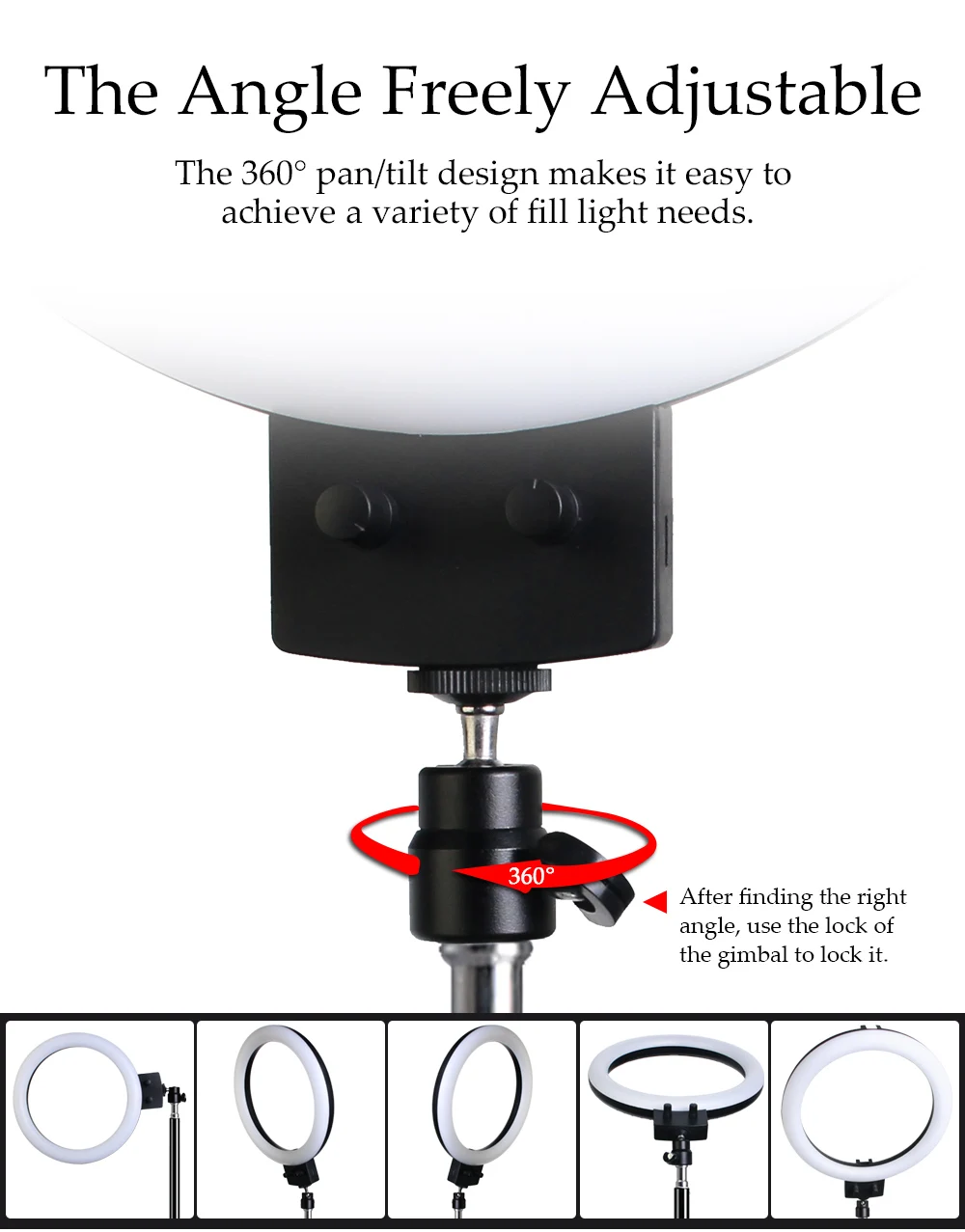 9 дюймов кольцевой светильник: с регулируемой яркостью и регулируется, вы можете отрегулировать светильник влияние от 1%-100%. Кольцевой светильник для селфи делает вас более привлекательным и очаровательным.Многофункциональный штатив: Этот мини-штатив подходит для кольцевого светильник, телефона и камеры.Вращение на 360 °: кольцевой светильник может вращаться на 360 градусов, светильник светится в каждом углу.USB разъем питания ed: Кольцевой светильник можно подключить к компьютеру, мобильному питанию и т. Д.Шаровая Головка и зажим для телефона: подходит для большинства видов смартфонов и мини-подушек.
