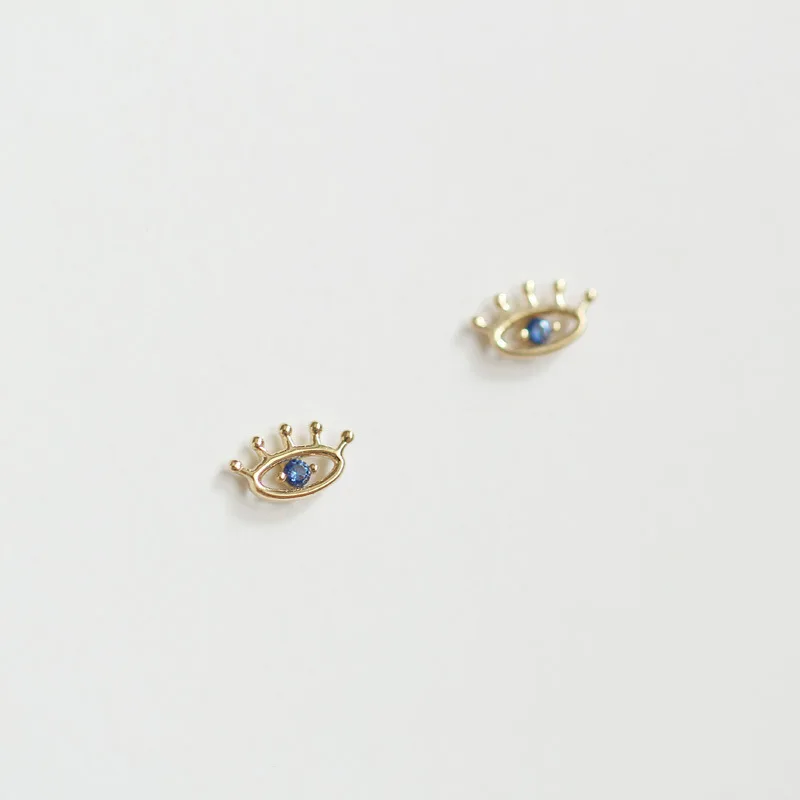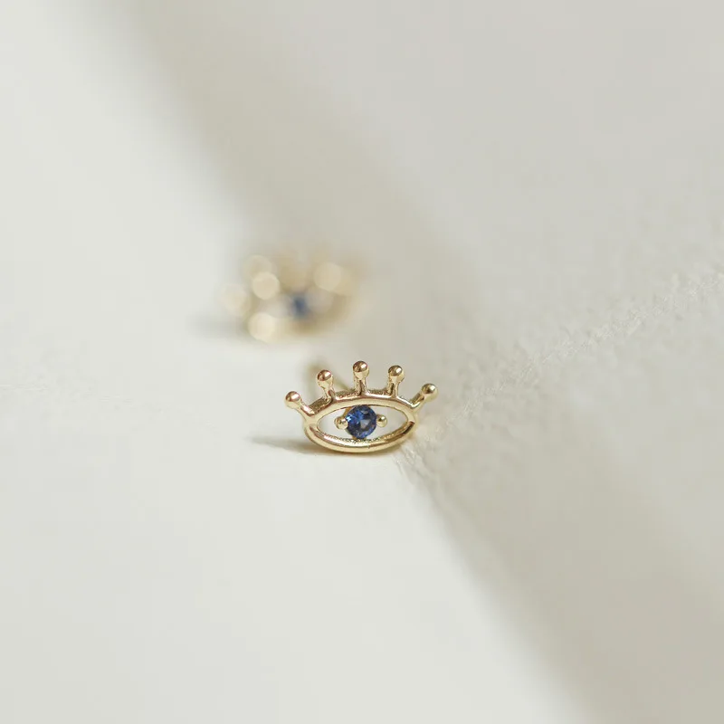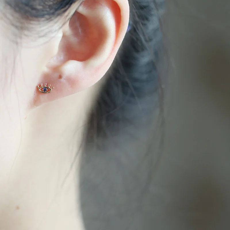 Маленькие серьги-гвоздики с голубыми медными кристаллами