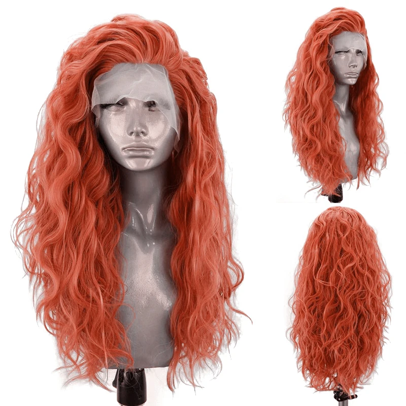 Харизма имбирный синтетический парик фронта шнурка для женщин длинный объемный волнистый парик для косплея с боковыми частями парик для косплея