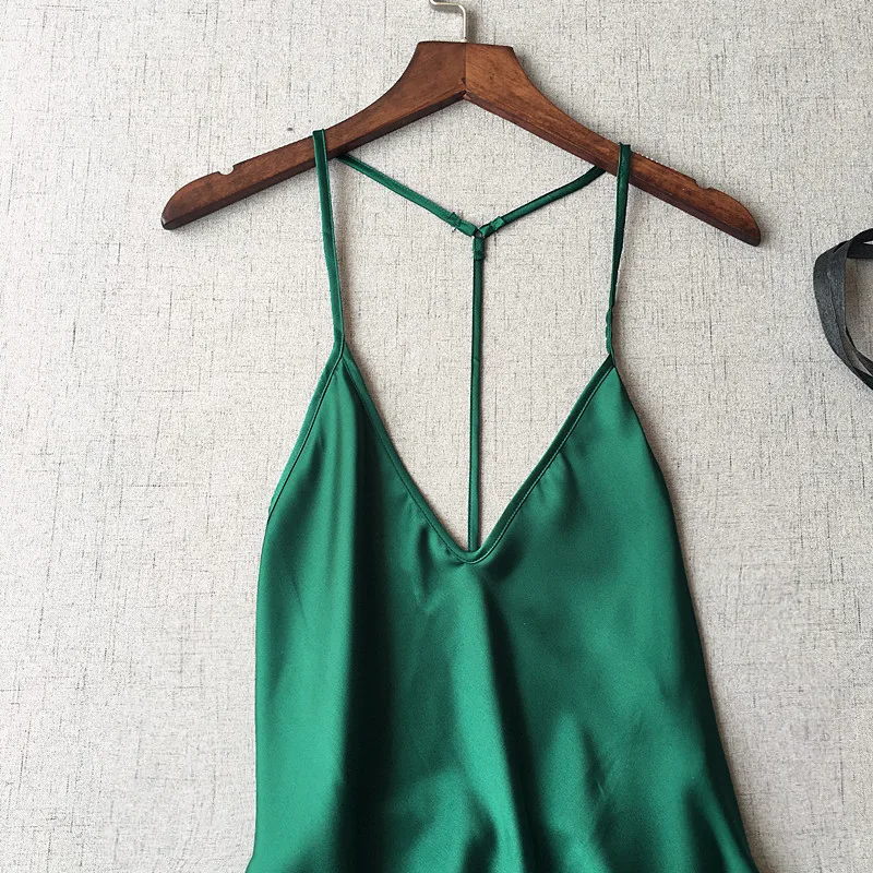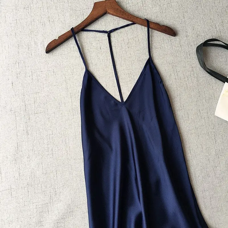 Женская ночная рубашка, летняя темно-синяя Ночная рубашка на бретельках с открытой спиной, 2019