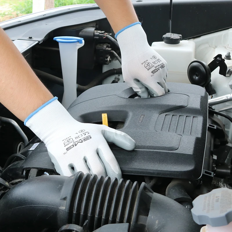 Горячая Распродажа GMG CE сертифицированные EN388 белые полиэфирные серые Гладкий Нитриловый рабочие защитные перчатки рабочие перчатки Механика
