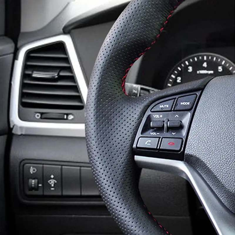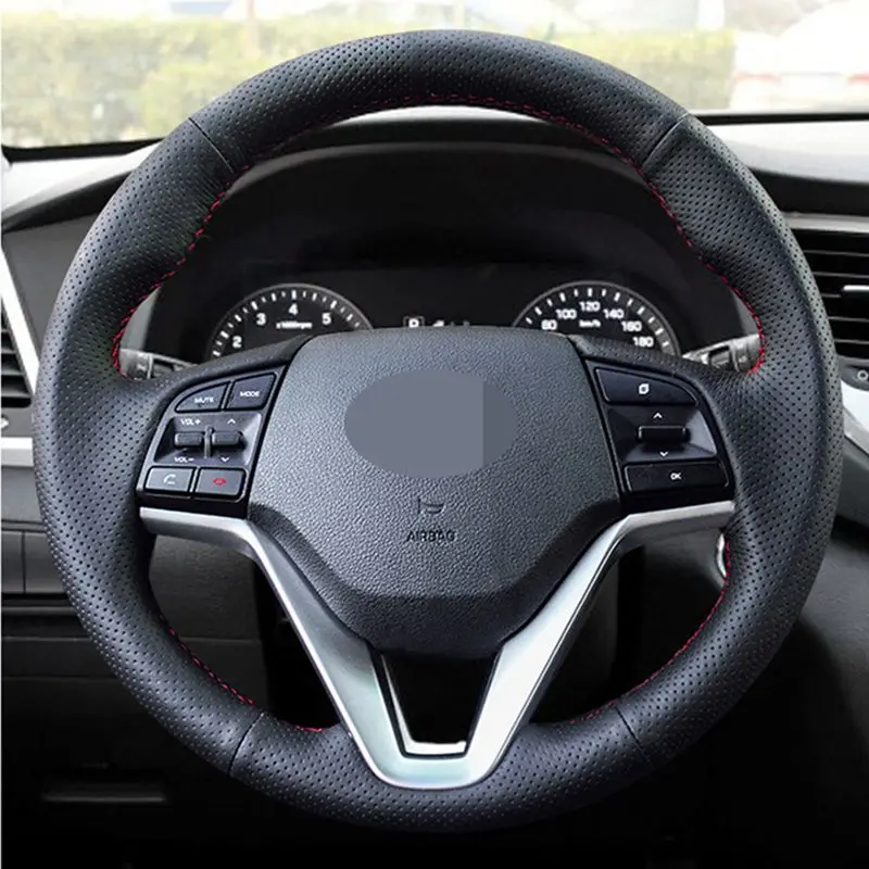 Прошитый вручную черный мягкий чехол рулевого колеса автомобиля из искусственной кожи для Hyundai Tucson 3 2019 2018 2017 2016 2015