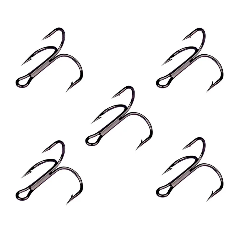 10 шт./лот 2 #4 #6 #8 #10 # черный рыболовный крючок из высокоуглеродистой стали тройные перевернутые Крючки рыболовные снасти круглый изгиб тройник для басов