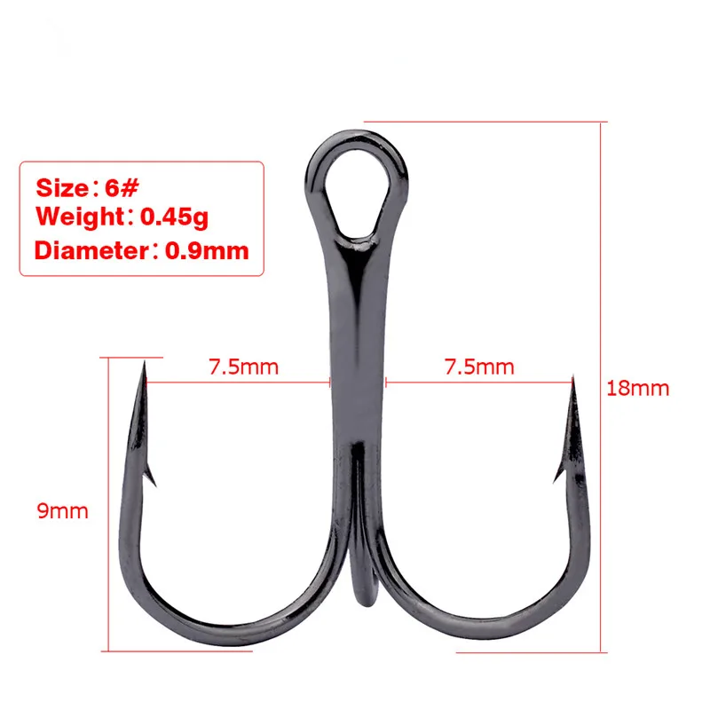 50 шт.лот тройной рыболовный крючок Размер 2468101214 Высокоуглерод...