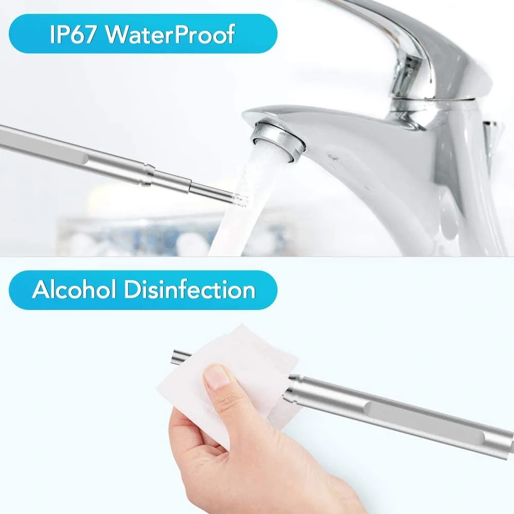 4.IP67 водонепроницаемый цифровой отоскоп: водонепроницаемый класс отоскопа инспекционной камеры IP67 и пожалуйста, очистите ушную камеру водой или протрите спиртом перед использованием отоскопа, он будет более чистым и безопасным для вас.