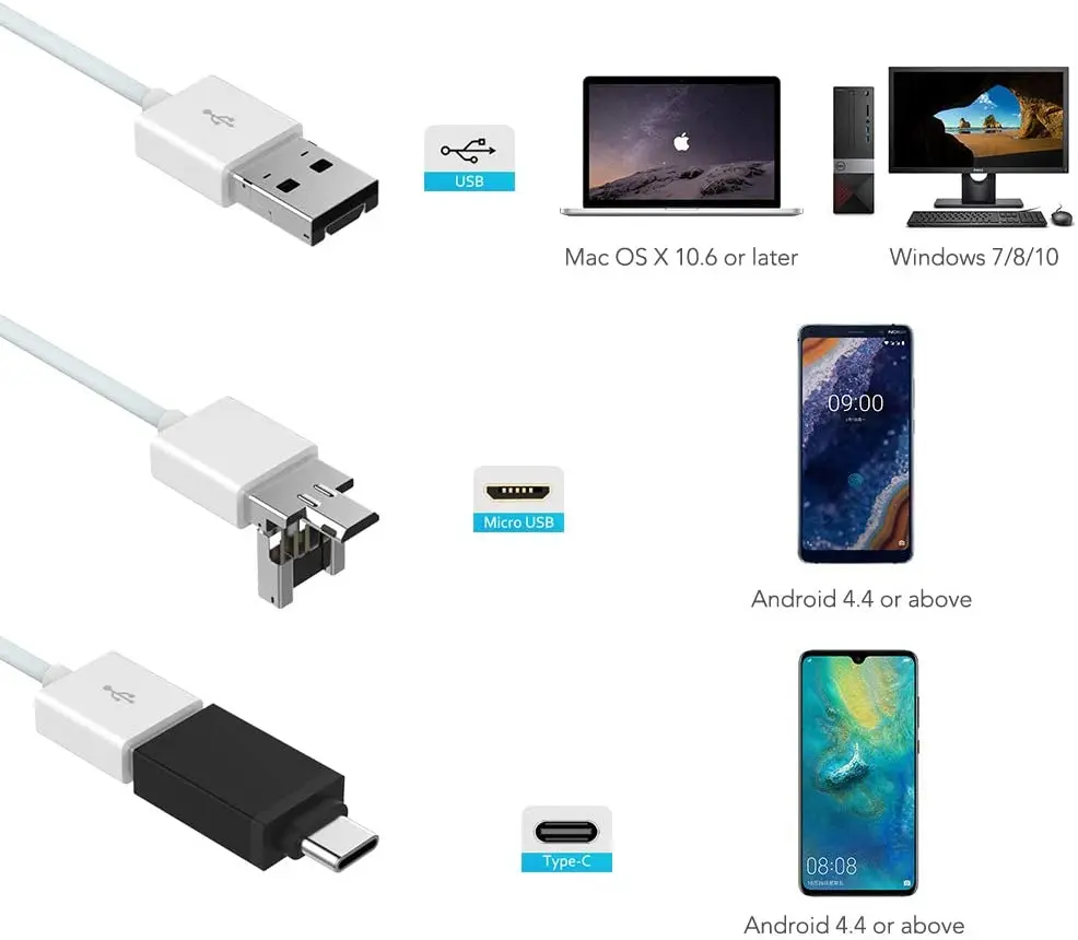 Обратите внимание, что этот HD USB 4,3 мм отоскоп поддерживает Android 4,4 + устройства (оборудование с OTG и UVC), Mac OSX 10,6 + и Windows 7/8/10 или более поздней версии ПК!