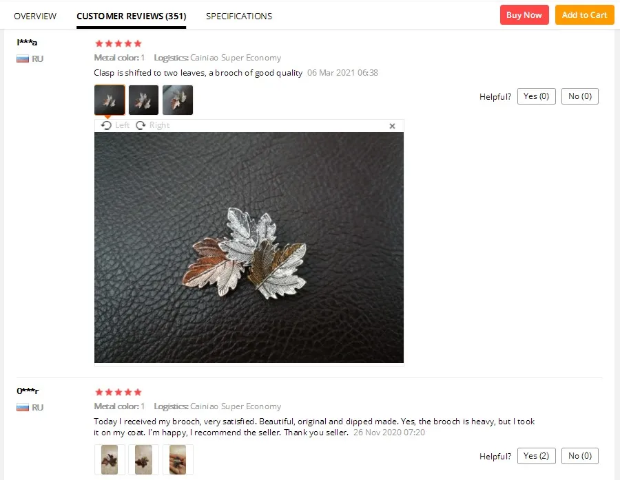 Одна из лучших покупок - красивая брошь, хочется носить. Рекомендую! Пришло моментально.