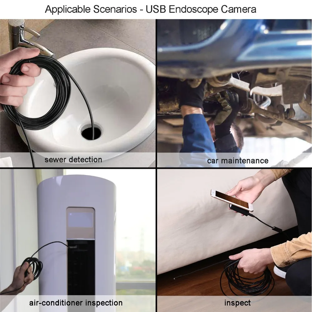 Мини-эндоскоп диаметром 5,578 мм с USB-кабелем длиной 1 м и 2 м