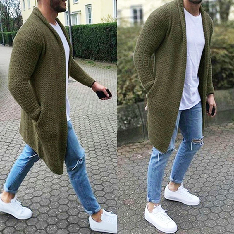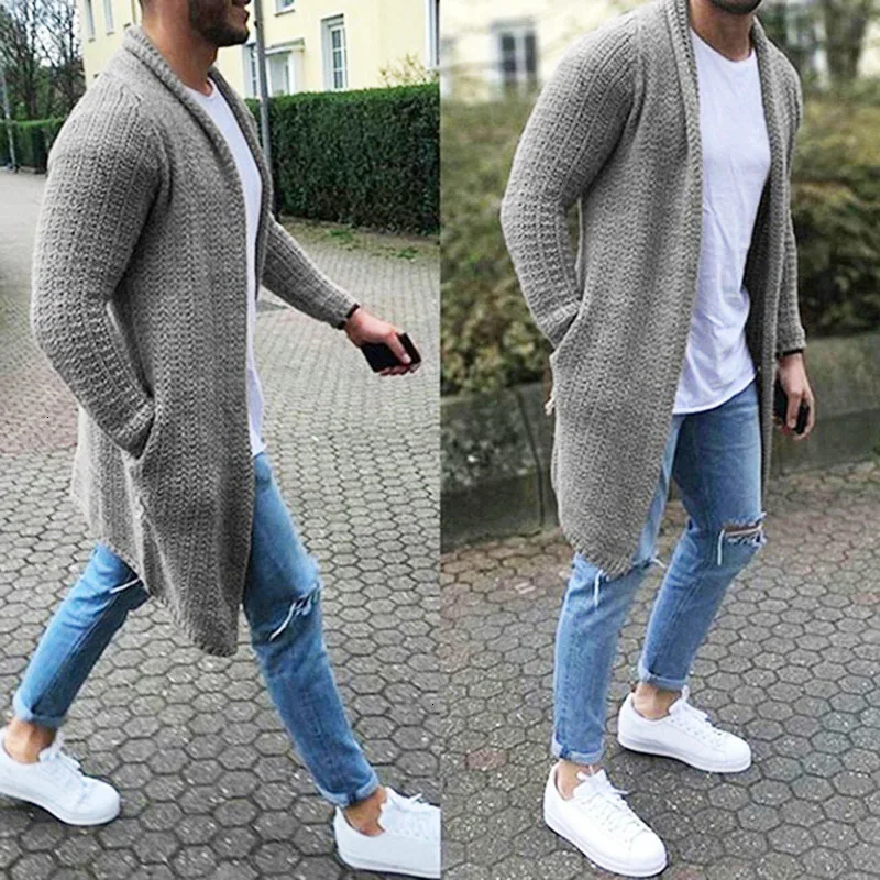 Мужской вязаный кардиган Moomphya, свитер с длинными рукавами, пальто-ветровка в стиле хип-хоп, эластичный свитер, уличная одежда, 2021