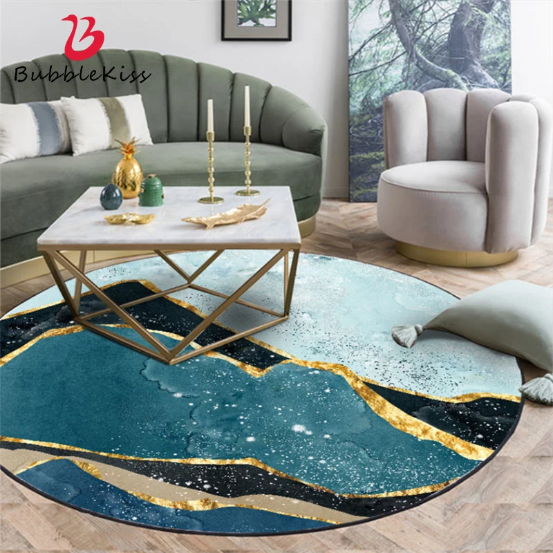 Ковры для гостиной, абстрактный синий зеленый ковер с узором в виде пейзажа, круглый ковер для спальни, гостиной, аксессуары для стола