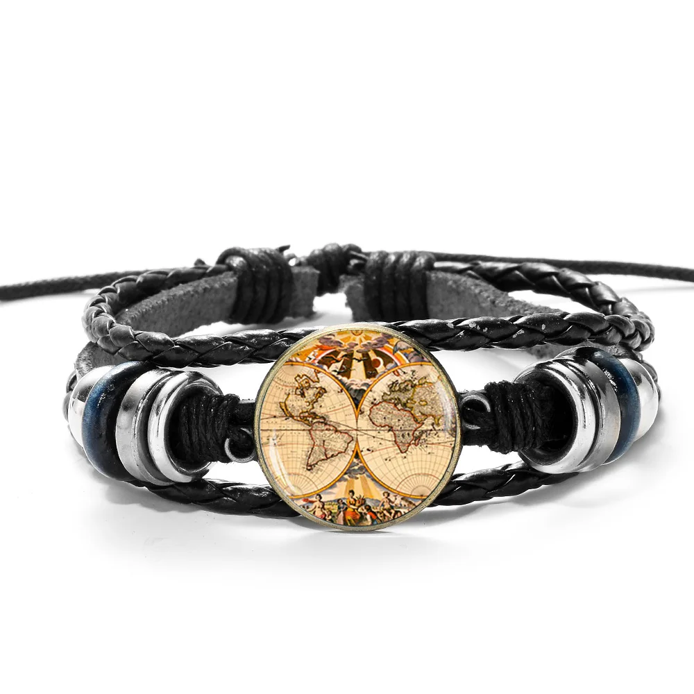 Плетеный кожаный браслет для мужчин и женщин, браслет в стиле стимп...