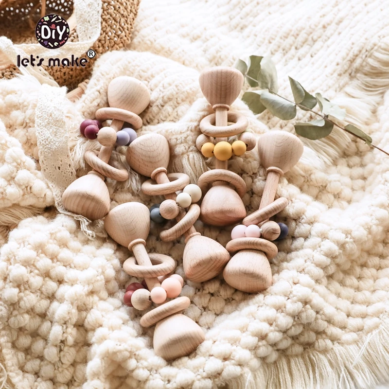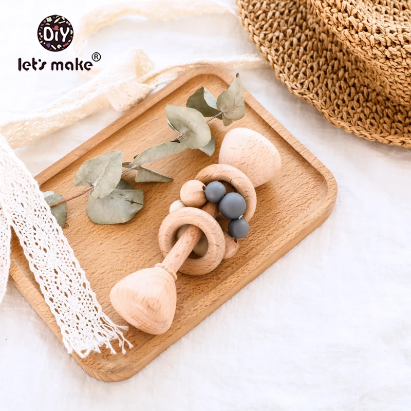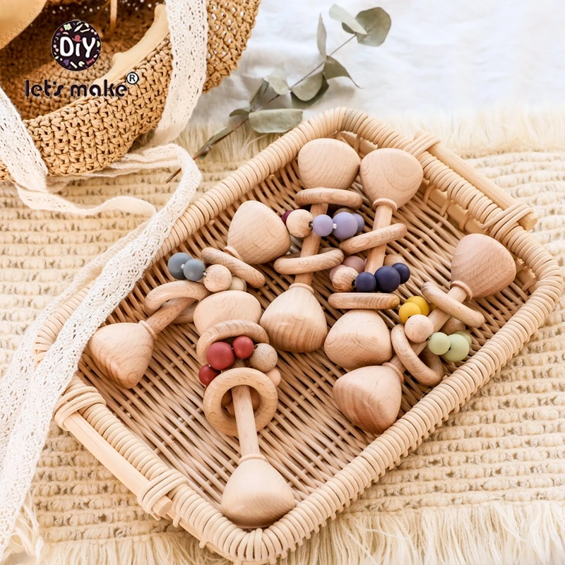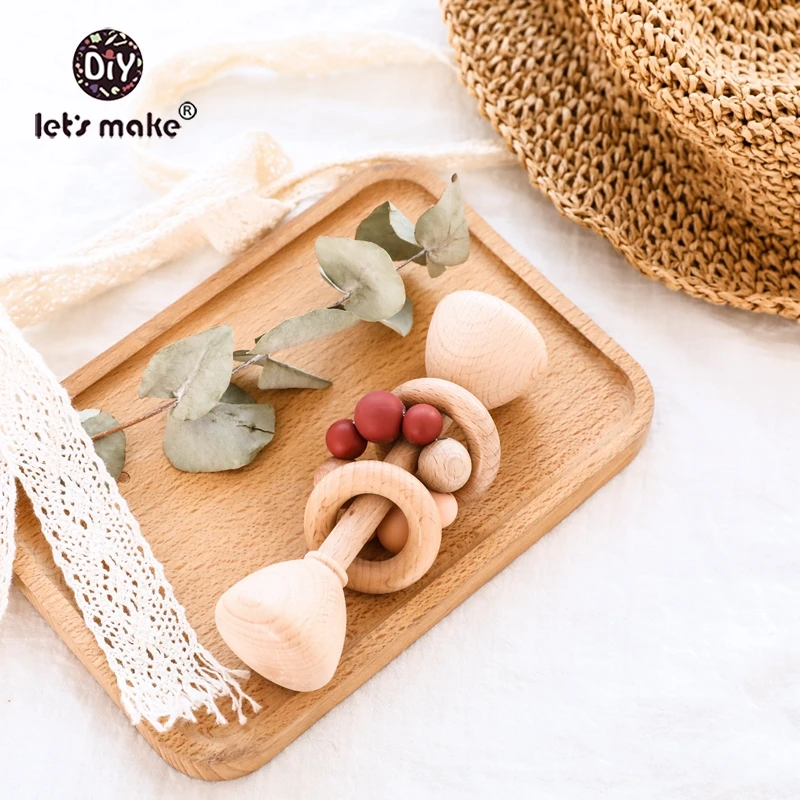 Деревянные погремушки Let's Make, 5 шт., Буковый медвежонок, ручной прорезыватель, деревянные кольца, детские погремушки, игровой зал, игрушка Монтессори, коляска, развивающие игрушки