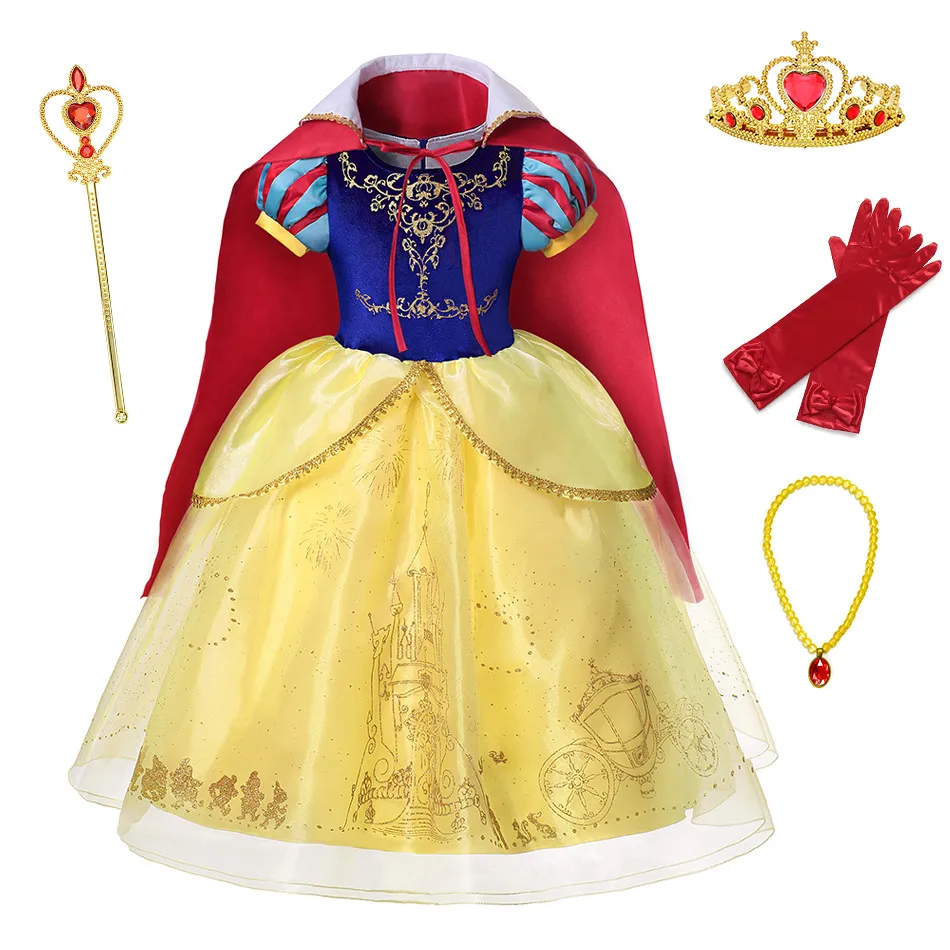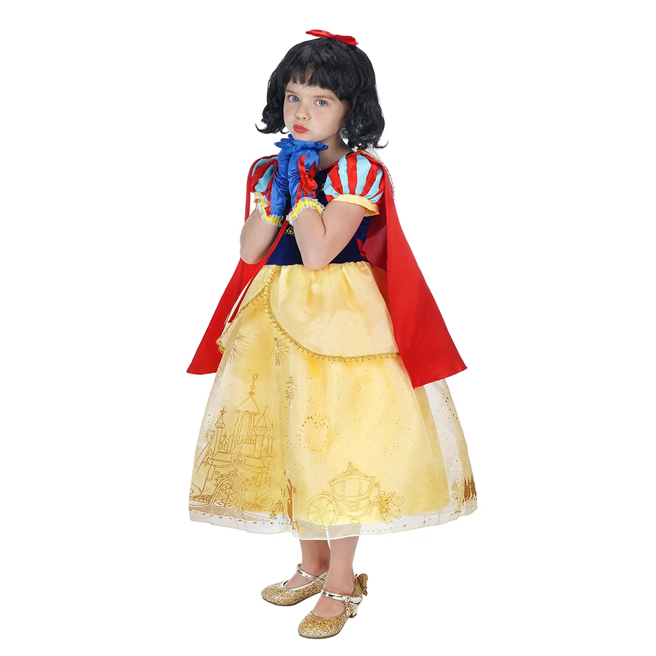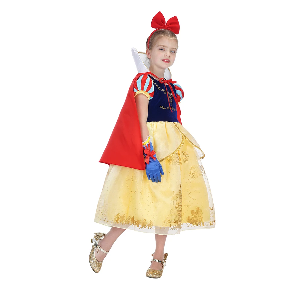 Бальное платье Белоснежки с накидкой для девочек, классическое платье принцессы в винтажном стиле, платье для рождественской вечеринки, косплей, белоснежные наряды