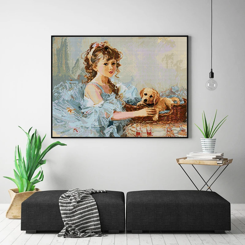 Набор для вышивки Девочка и собака, 14CT 11CT