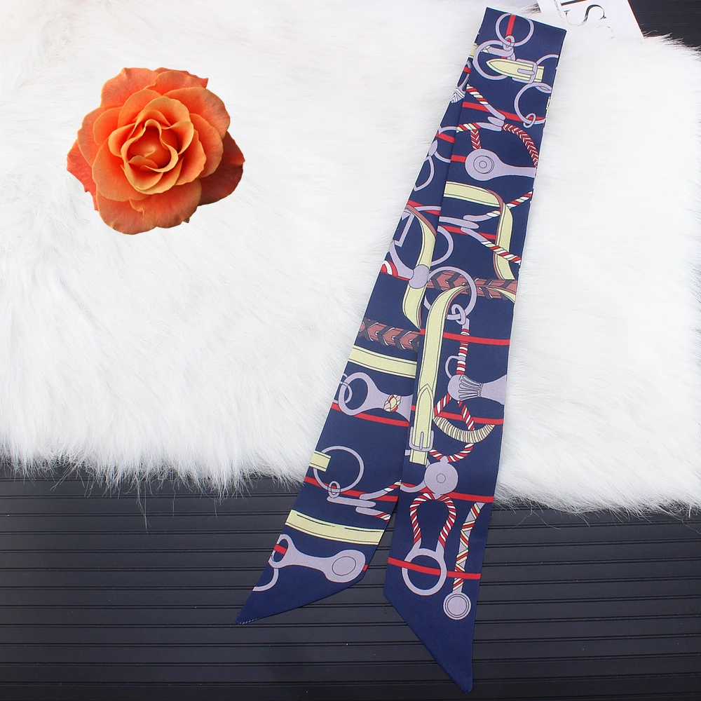 Новый Шелковый шарф, роскошная брендовая сумка, шарф для женщин, цепочка с принтом головы, узкий шарф, длинная ручка для сумки шарфы, шарфы, Прямая поставка