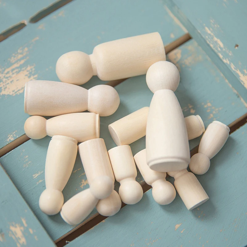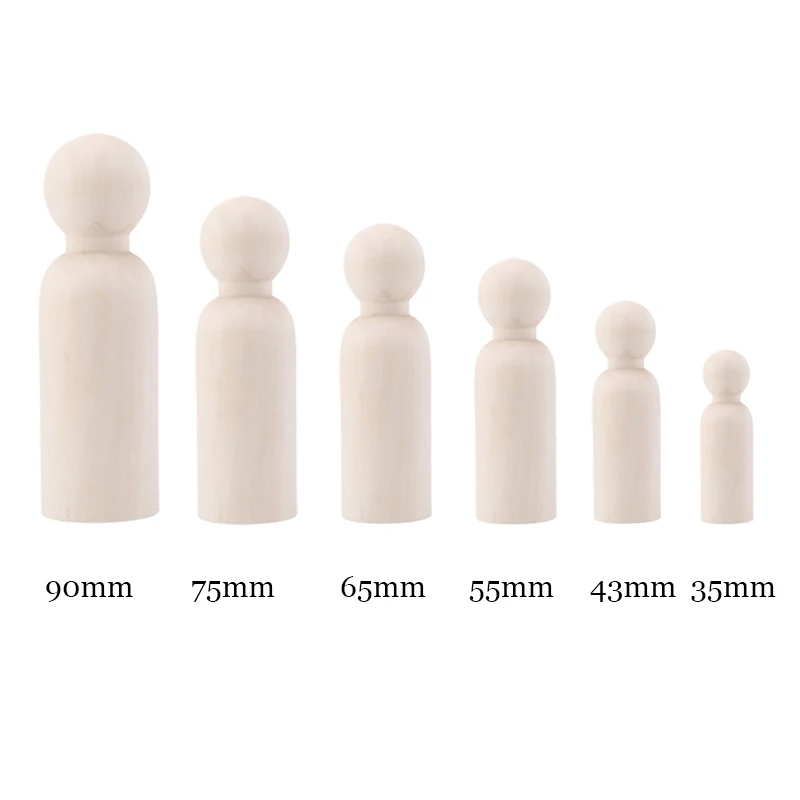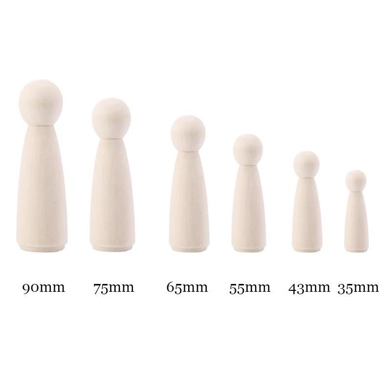 Куклы-Колышки из твердой древесины, 6 шт.лот, незавершенные, для девочек и мальчиков, деревянные заготовки для детского декора, Мини-куклы-колышки 90 мм, 75 мм, 65 мм, 55 мм, 35 мм