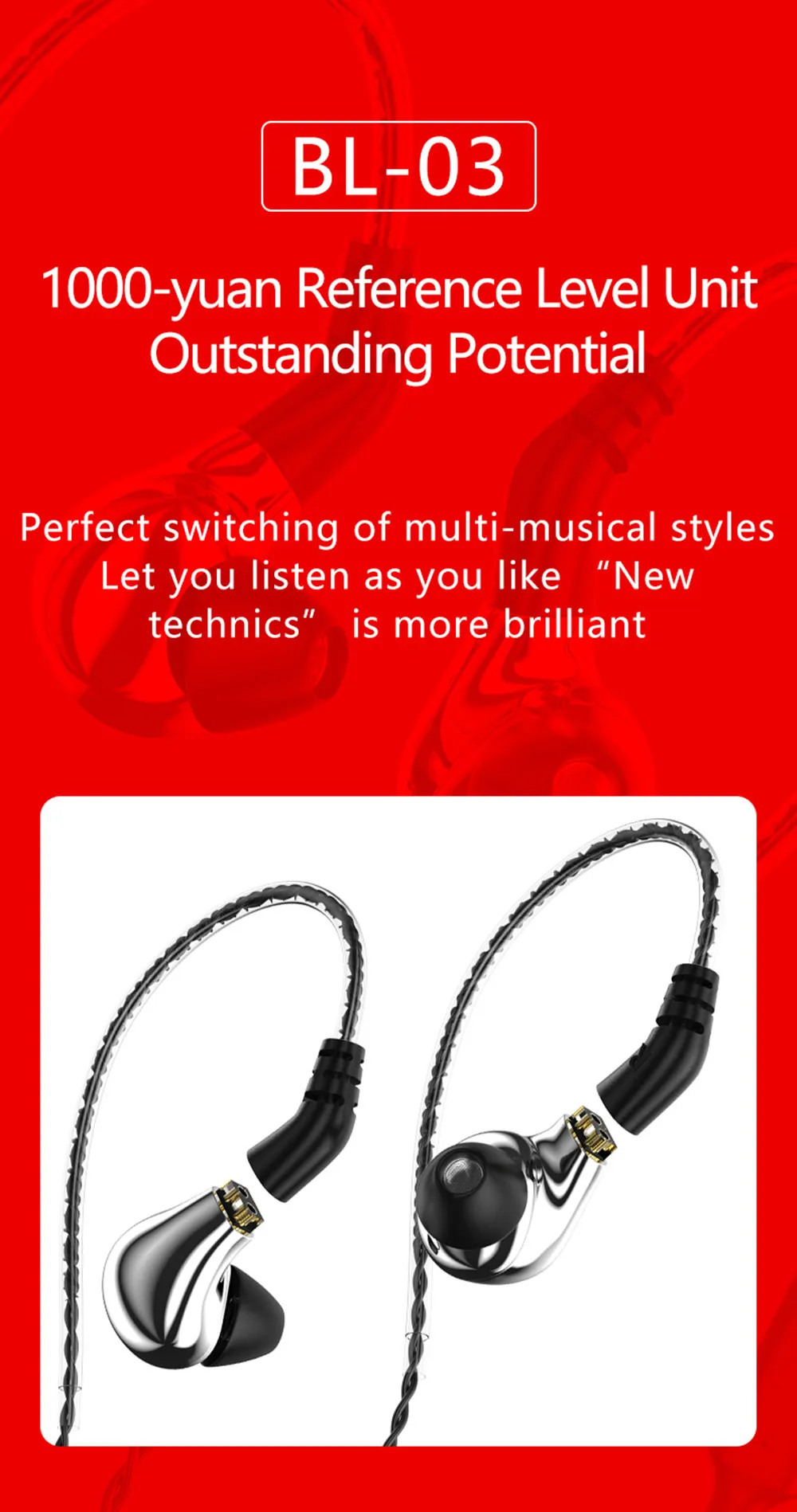 Наушники-вкладыши BLON с карбоновой диафрагмой BL-03, 10 мм