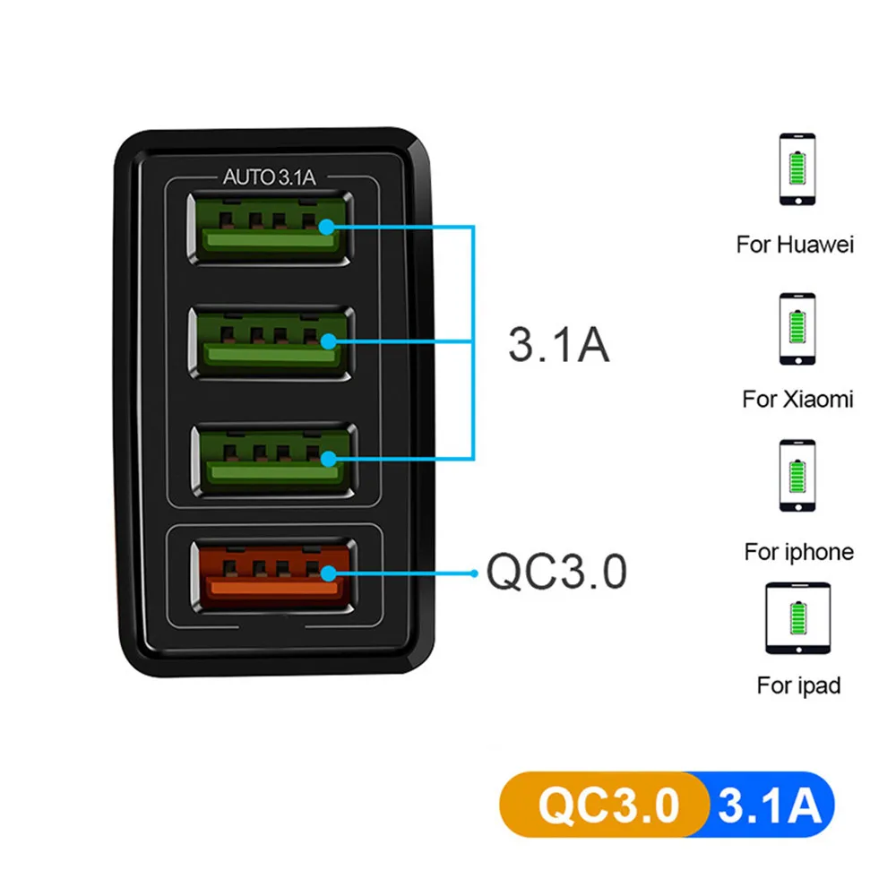 Умное зарядное устройство с 4 USB-портами и поддержкой быстрой зарядки