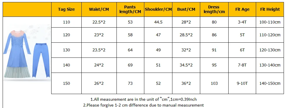 Размер: 110 = От 3 до 4 лет, 120 = 5T,130 = 6T,140 = От 7 до 8 лет, 150 = От 9 до 10 лет