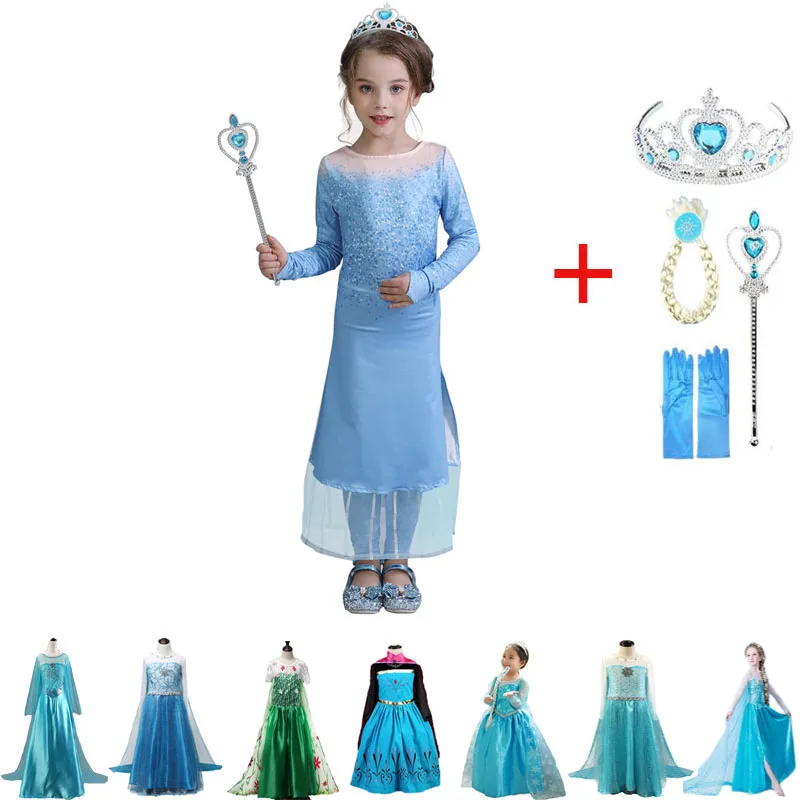 Новое платье Эльзы платье принцессы Эльзы и Анны для девочек 2 костюмы для косплея Детские вечерние платья Снежная королева платье Эльзы для дня рождения платье принцессы с изображением принцессы Эльзы детское платье Vestidos