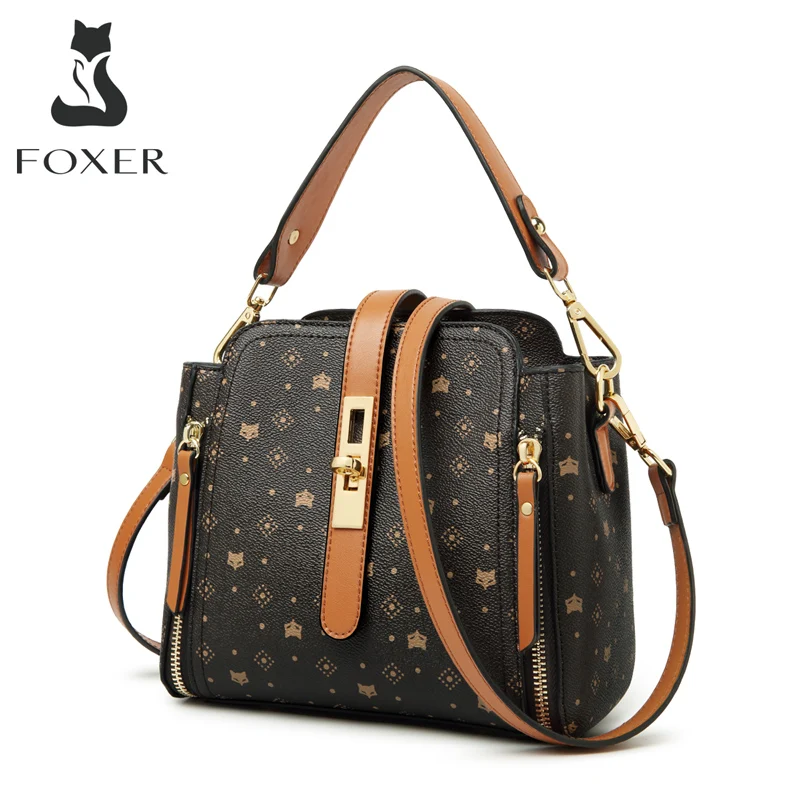 Маленькие сумки FOXER через плечо с надписью, Дамская Ретро Сумочка с монограммой, модная винтажная женская сумка через плечо из ПВХ